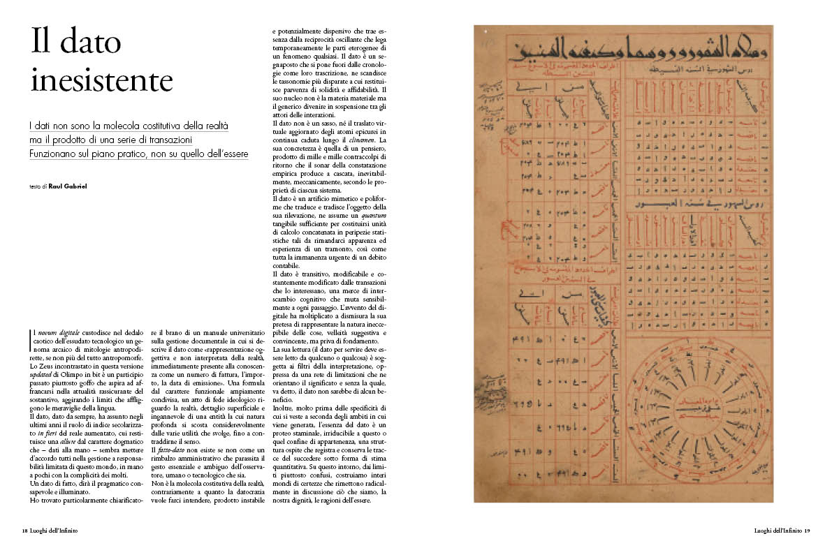 Gli scienziati calcolano la mole dei dati esistenti in zettabyte, unità che corrisponde a 1 seguito da ventuno zeri. Una quantità vertiginosa, che cresce in progressione aritmetica e che non solo descrive ma sempre più plasma la vita, gli spazi e i tempi. Nell’età del dato, l’intelligenza artificiale si presenta come una delle più grandi rivoluzioni della storia dell’uomo. Come interpretarla? Dove trovare elementi che permettano di viverla con speranza? Alla “età del dato” è dedicato lo speciale del numero 308 di Luoghi dell’Infinito, il mensile di arte, cultura e itinerari di Avvenire, in edicola da martedì 2 settembre.